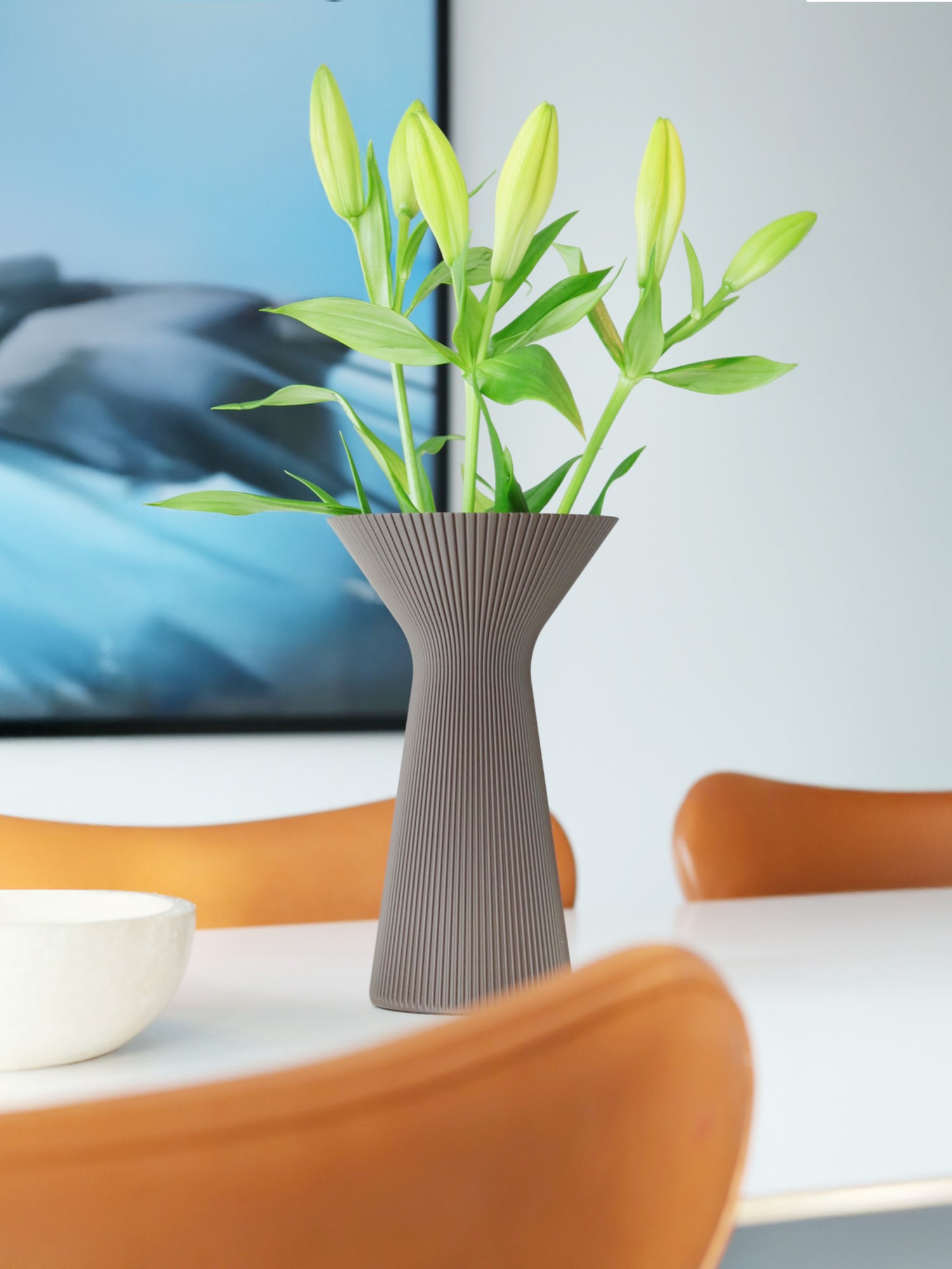 Skab et unikt og elegant udtryk i dit hjem med VOLUTA. Den snoede, skulpturelle form kombinerer moderne design med funktionalitet og giver dit blomsterarrangement en stilfuld ramme, uanset om du bruger friske eller tørrede blomster.